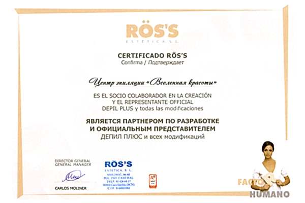 Все центры эпиляции «Вселенная красоты» работают на аппаратах Depilplus 13MHz испанской компании ROS′S. Мы являемся соавторами и консультантами по созданию всей линейки моделей этого электроэпилятора. Посмотреть сертификат